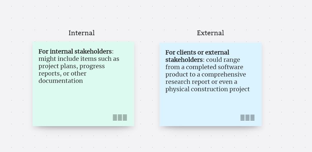Deliverables in project management can be internal or external.