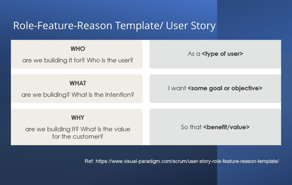 User Story: A user story is a short, simple description of a feature from the perspective of the end user. It is written in the form of a sentence or phrase that describes the desired functionality from the user’s point of view. It is a way of capturing the requirements of a feature in a format that is easy for developers to understand and implement.
