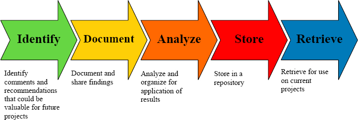 Lessons learned and knowledge gained throughout the project are transferred to the lessons learned repository for use by future projects.