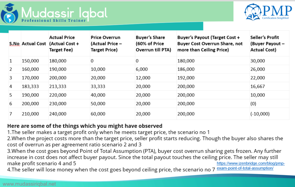 PTA = ((Ceiling Price – Target Price)/buyer’s Share Ratio) + Target Cost