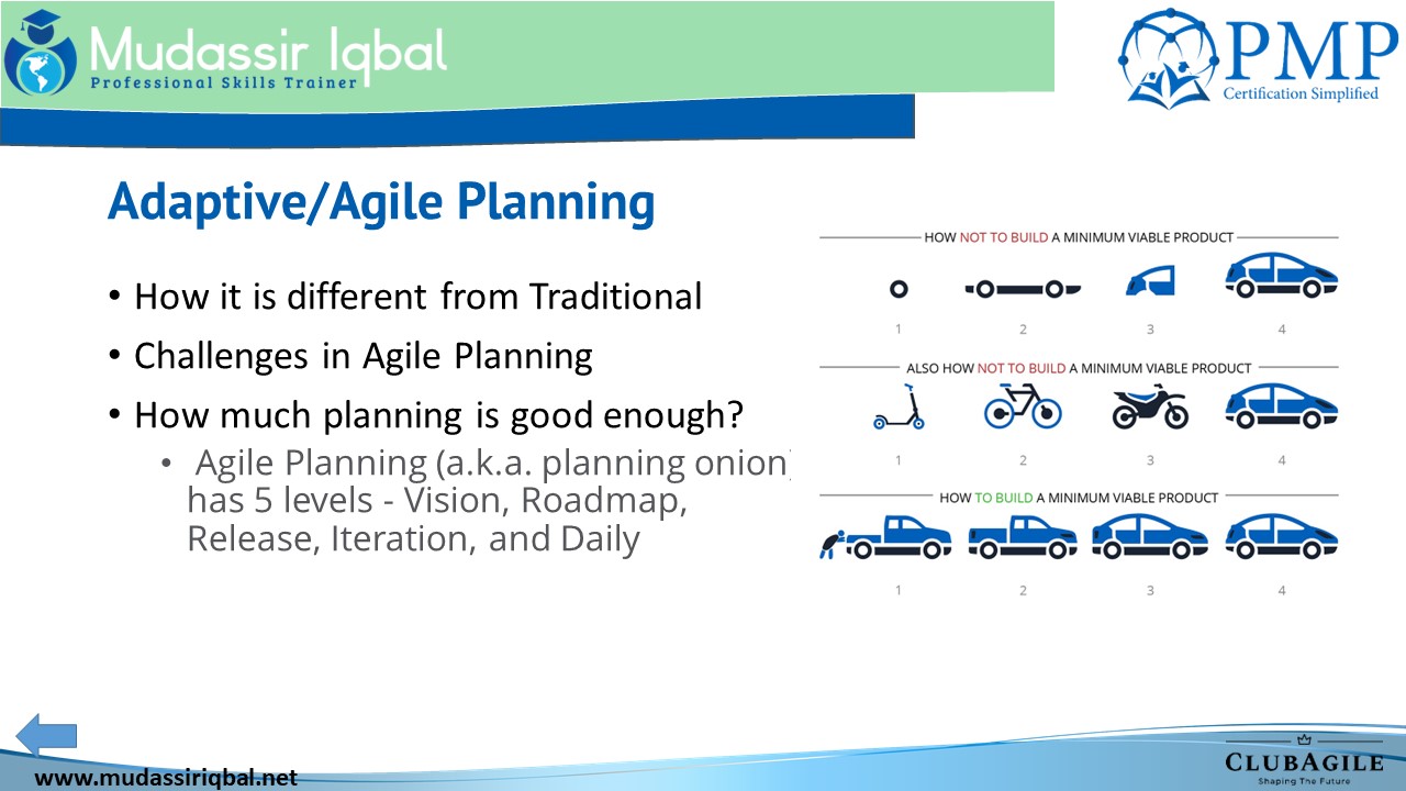 In the beginning of the project, the team would have a high-level plan that outlines the overall scope of the project, the major milestones, and the general timeline. As the project progresses, the team will add more detailed information to the plan, such as specific tasks that need to be completed, the resources required to complete them, and the timelines for each task. This allows the team to be more responsive to changes and uncertainties that may arise during the project.
